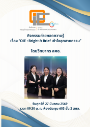 กิจกรรมถ่ายทอดความรู้ภายในองค์กร โดยวิทยากร สศอ. เรื่อง “OIE : Bright & Brief เข้าใจอุตสาหกรรม”วันศุกร์ที่ ๒๗ มีนาคม 2569 เวลา 09.30 น. ณ ห้องประชุม 603 สศอ.