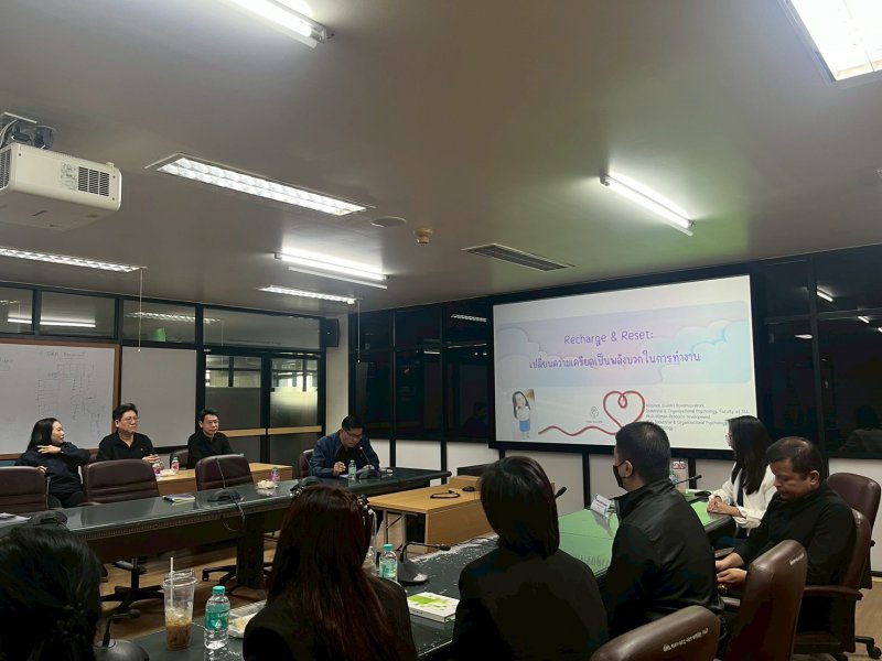 กิจกรรมเพื่อถ่ายทอดความรู้ ให้บุคลากรภายในสำนักงานเศรษฐกิจอุตสาหกรรม“Recharge & Reset เปลี่ยนความเครียด เป็นพลังบวกในการทำงาน” โดย อาจารย์ ดร.วิทสินี บวรอัศวกุล อาจารย์ประจำแขนงวิชาจิตวิทยาอุตสาหก